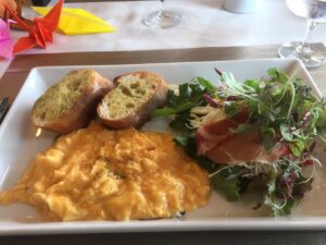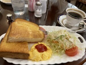 広島で、遊歩道を散策中に見つけたカフェでの朝食。