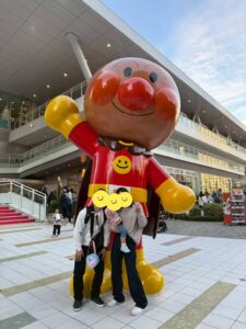 大きなアンパンマンが建物入り口に立っていて、記念撮影のために行列ができていました。