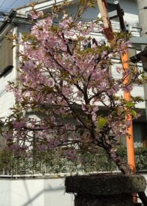早くに咲き出す桜といえば「河津さくら」が有名ですが、最近は玄関先などにも植えている家が多くなったようです。ほぼ満開を迎えようとしている河津さくらの濃いピンクが印象的です。